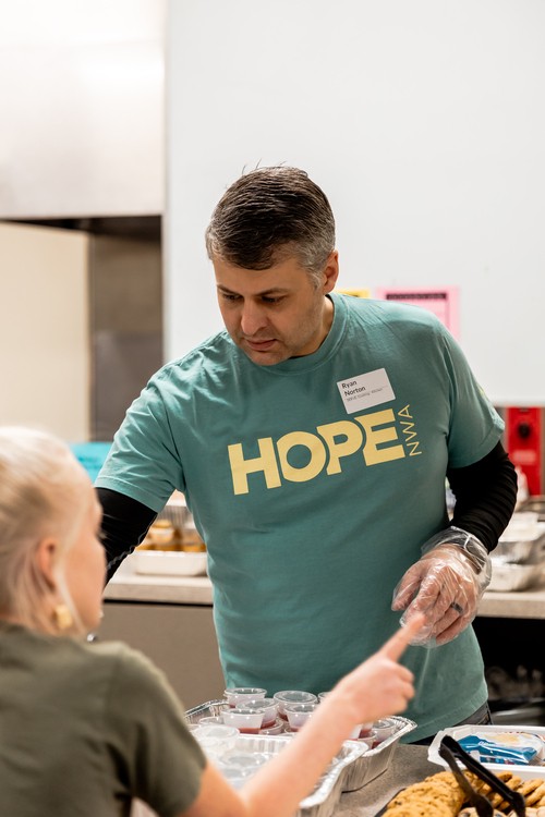 There are many ways to be part of HopeNWA. You can volunteer your time by serving with kids and teens, helping with hospitality, preparing meals, or assisting with practical projects that support foster families.